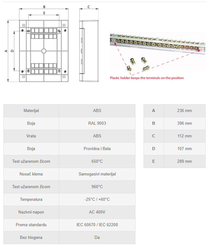 • Izolovana klema za uzemljenje i nulu